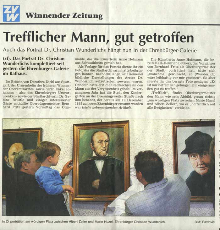 | Winnender Zeitung 13.07.2000 | Neues Ehrenbürger-Gemälde im Rathaus | |